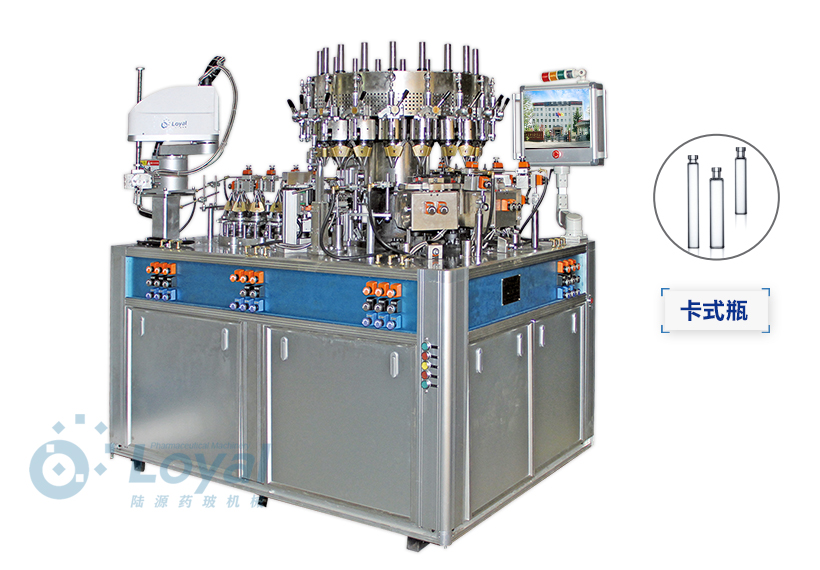 西林瓶生產線包括:自動上管、自動成型、經機械手轉換至前端檢測線(也叫生產管控)、檢測線檢測的項目:1、瓶口內外徑 2、瓶身長短 3、瓶身外徑 4、瓶口邊厚 5、瓶底內凹尺寸檢測;經檢測后的合格品再用機械手夾盤轉換至退火爐網帶上,經高溫減除應力后再降溫,通過氣動吸盤將回火后的小瓶轉換至后端檢測線,后端檢測(也是重檢也叫終檢),經后端拍照檢測項目